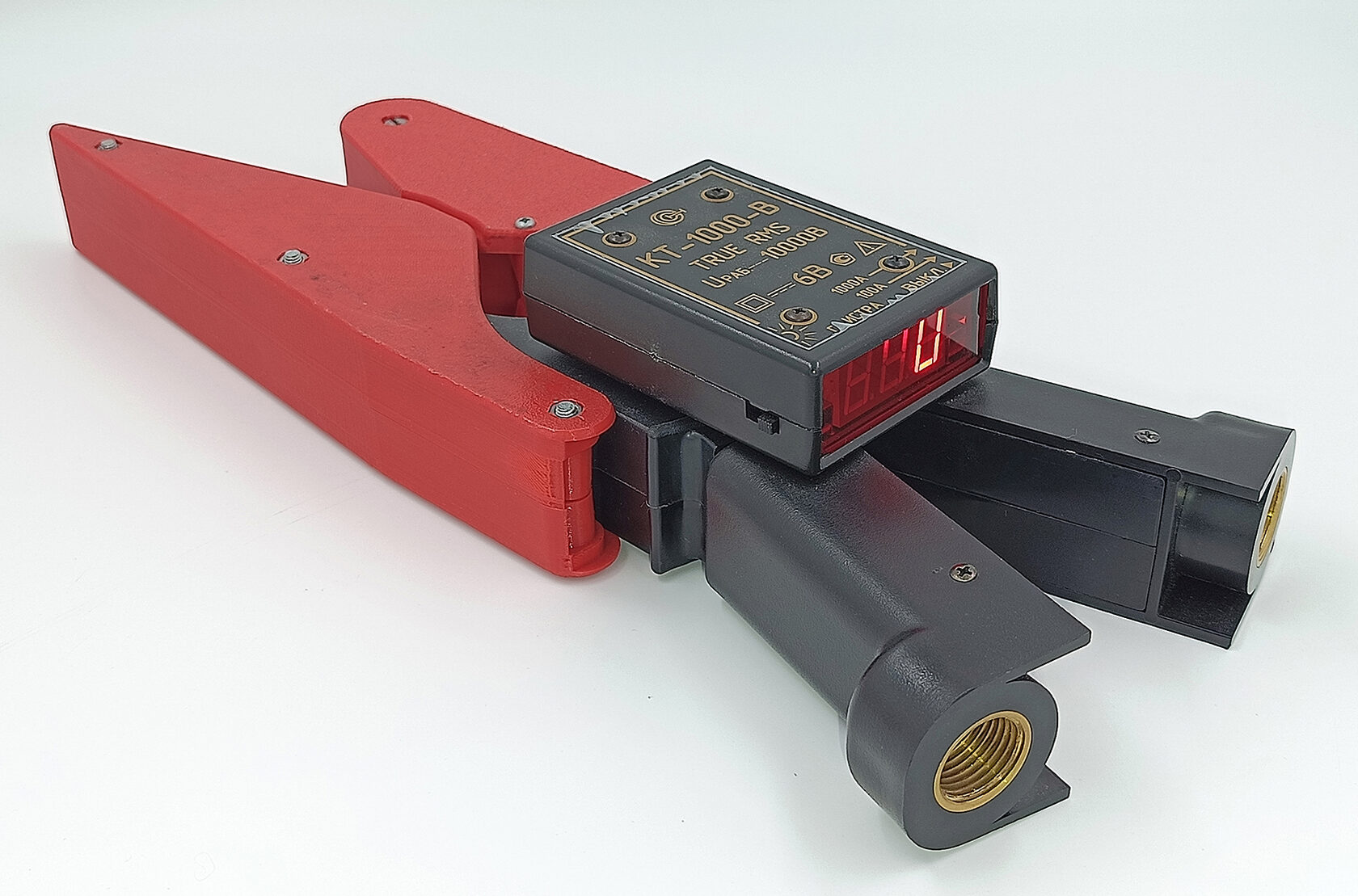 Инженерами нашей компании по запросу ПАО "Россети" были изготовлены экспериментальные клещи для измерения тока в цепях высокого напряжения(до 10 кВ), на базе клещей КТ-1000-В, клещи имеют встроенный Bluetooth модуль для передачи полученных показаний на смартфон и накладной механизм, не требующий ручного разведения штанг, что позволяет производить измерения на ЛЭП без использования автовышки!